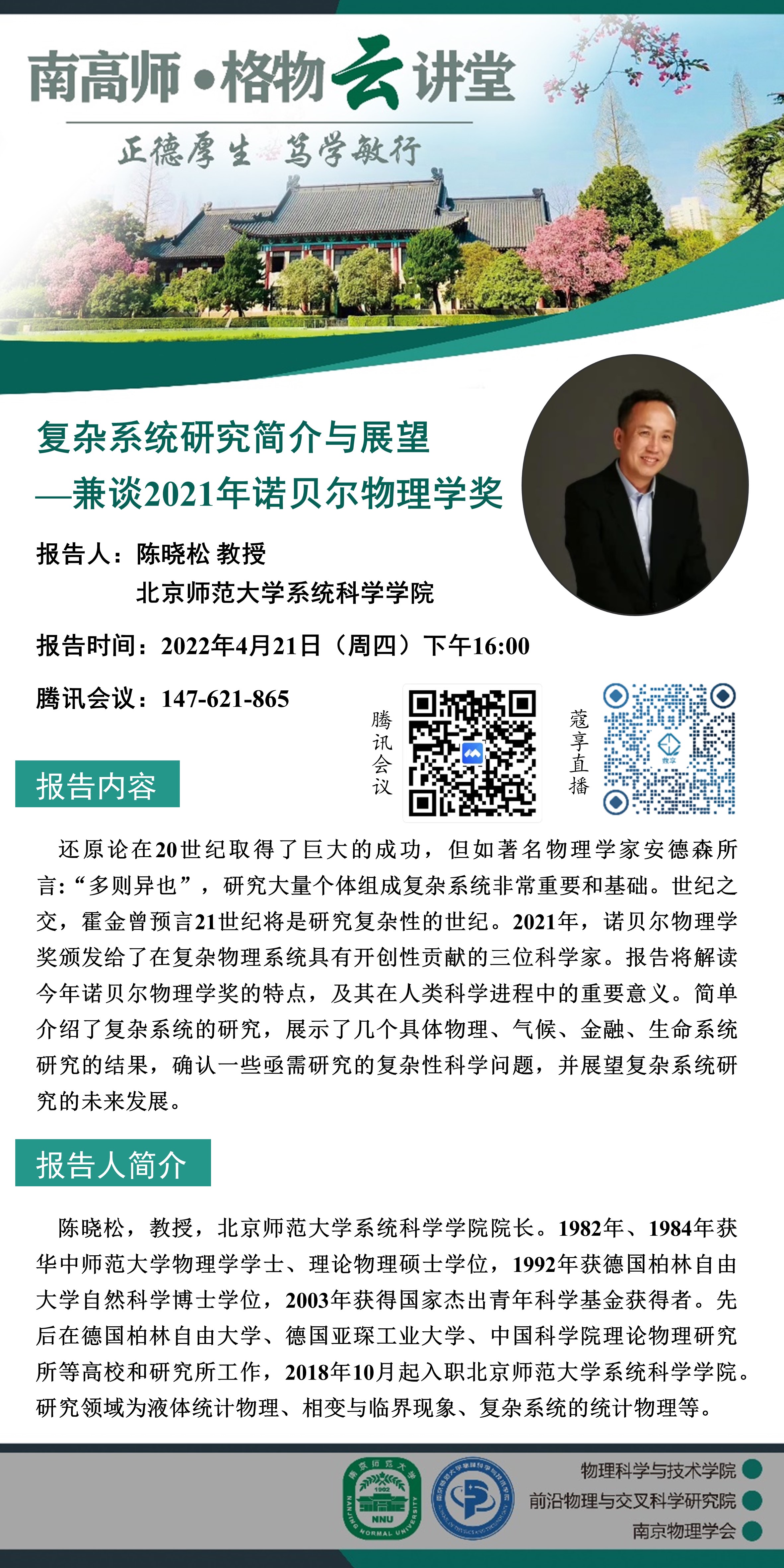 【欧洲杯直播预告 】【南高师·格物云讲堂】复杂系统研究简介与展望—兼谈2021年诺贝尔物理学奖