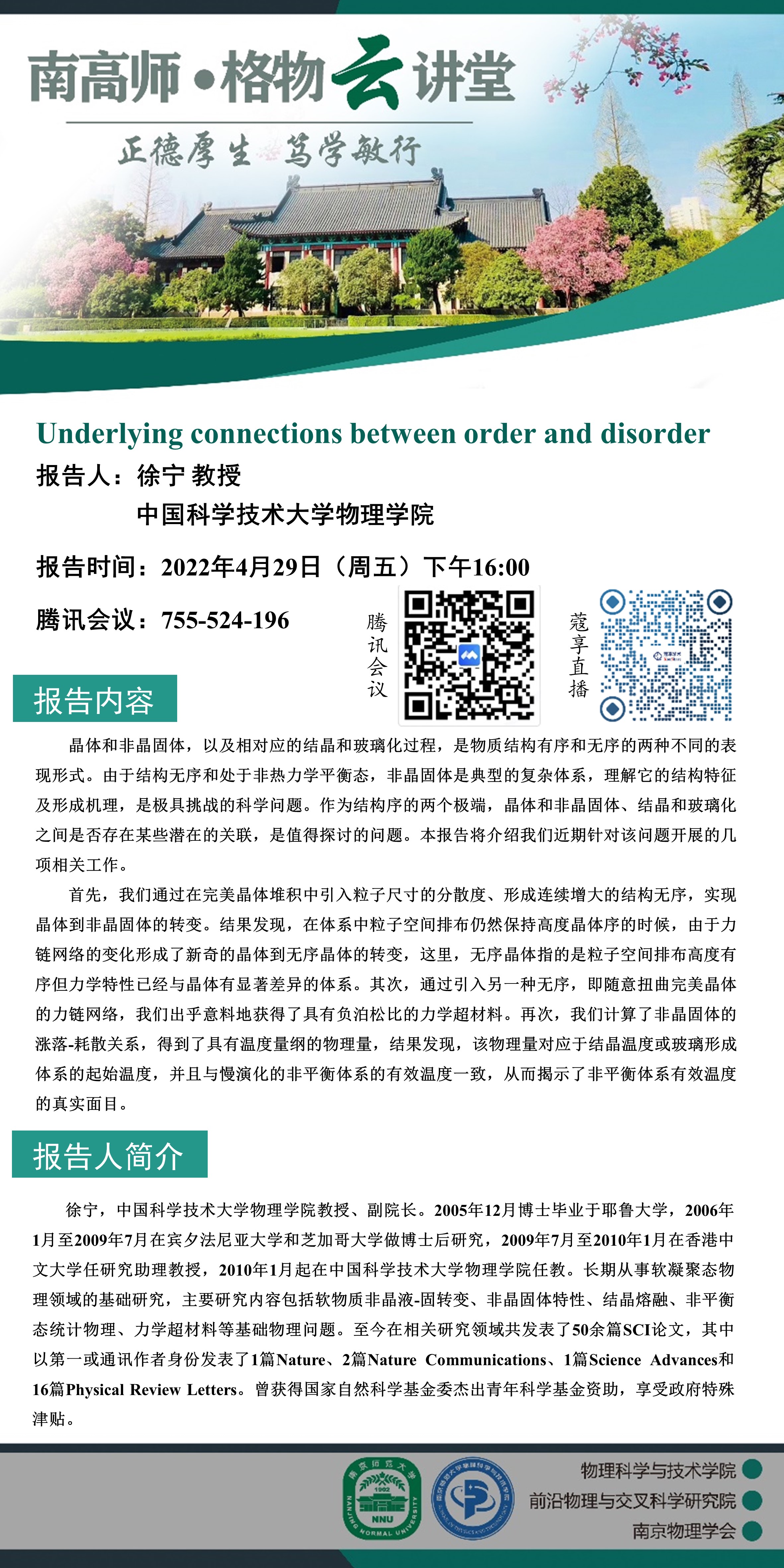 【欧洲杯直播预告 】【南高师·格物云讲堂】 Underlying connections between order and disorder
