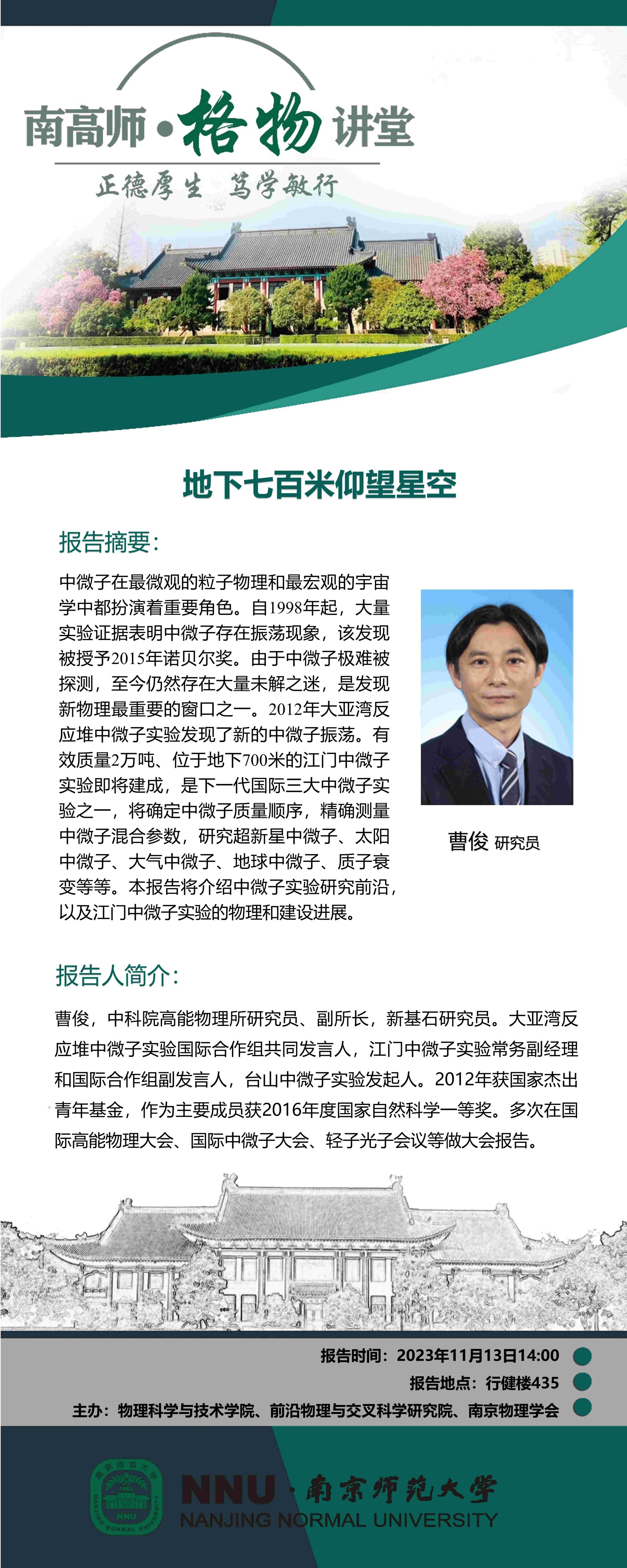 【欧洲杯直播预告 】“南高师·格物讲堂” 地下七百米仰望星空--曹俊研究员