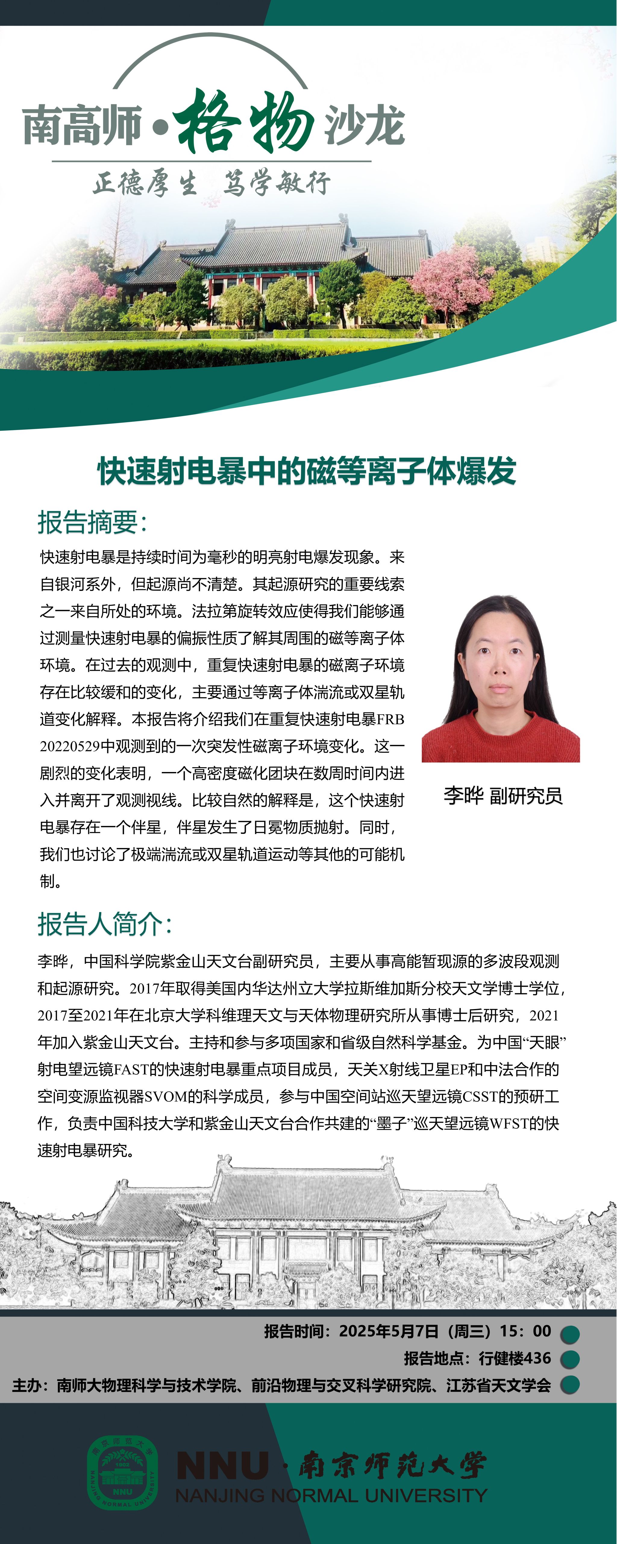 下一条:【欧洲杯直播预告 】“南高师·格物沙龙” 点亮黑暗——在高能量前沿测量希格斯玻色子性质和寻找暗物质--王子瑞研究员