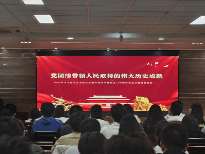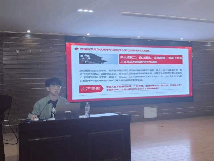 10月24日,李玉杰老师立足习近平总书记在庆祝中国共产党成立100周年大会上的重要讲话,强调中国共产党为实现中华民族伟大复兴创造的四个伟大成就。这些成就不仅彰显了党的坚强领导和伟大力量,也激励着每一位学生为实现中华民族的伟大复兴而努力奋斗。