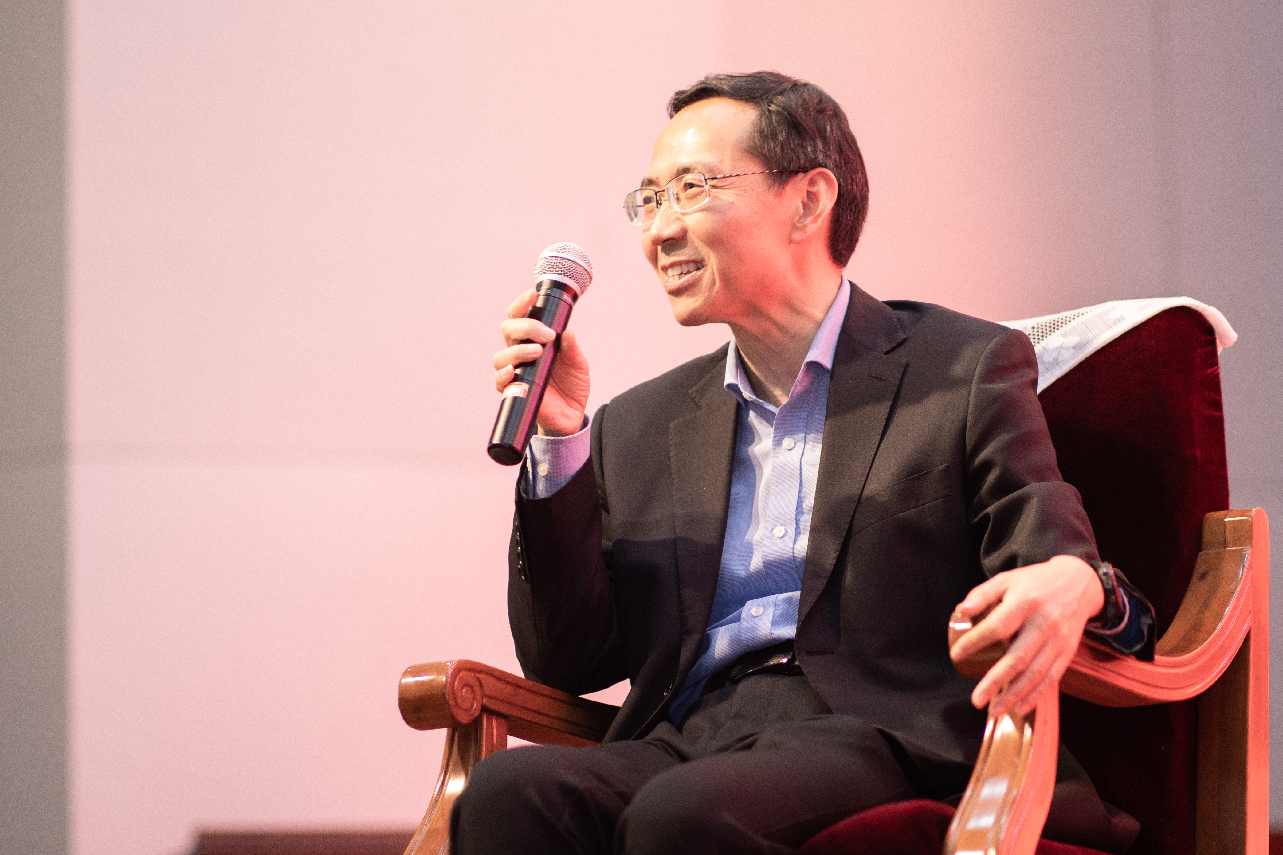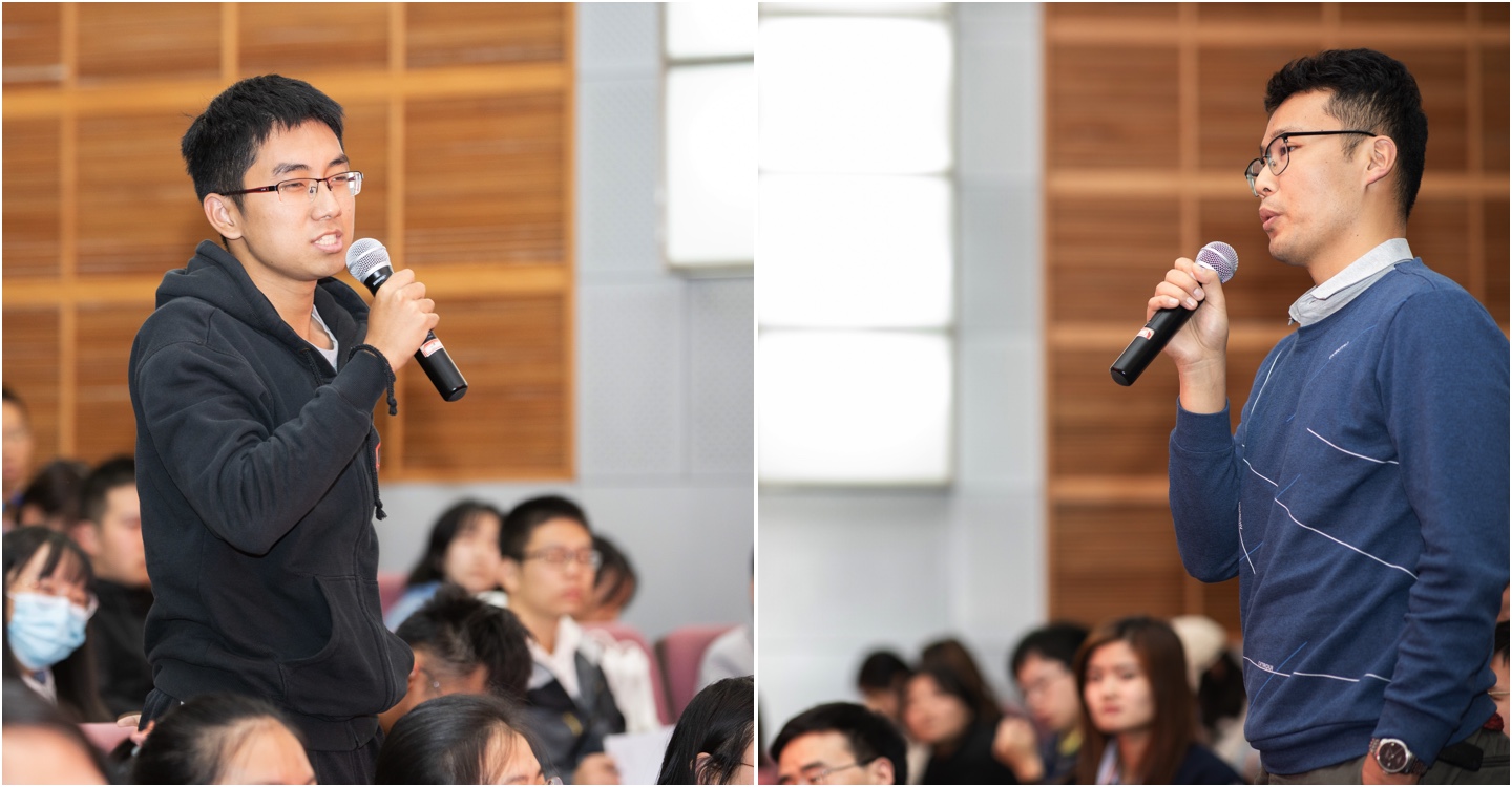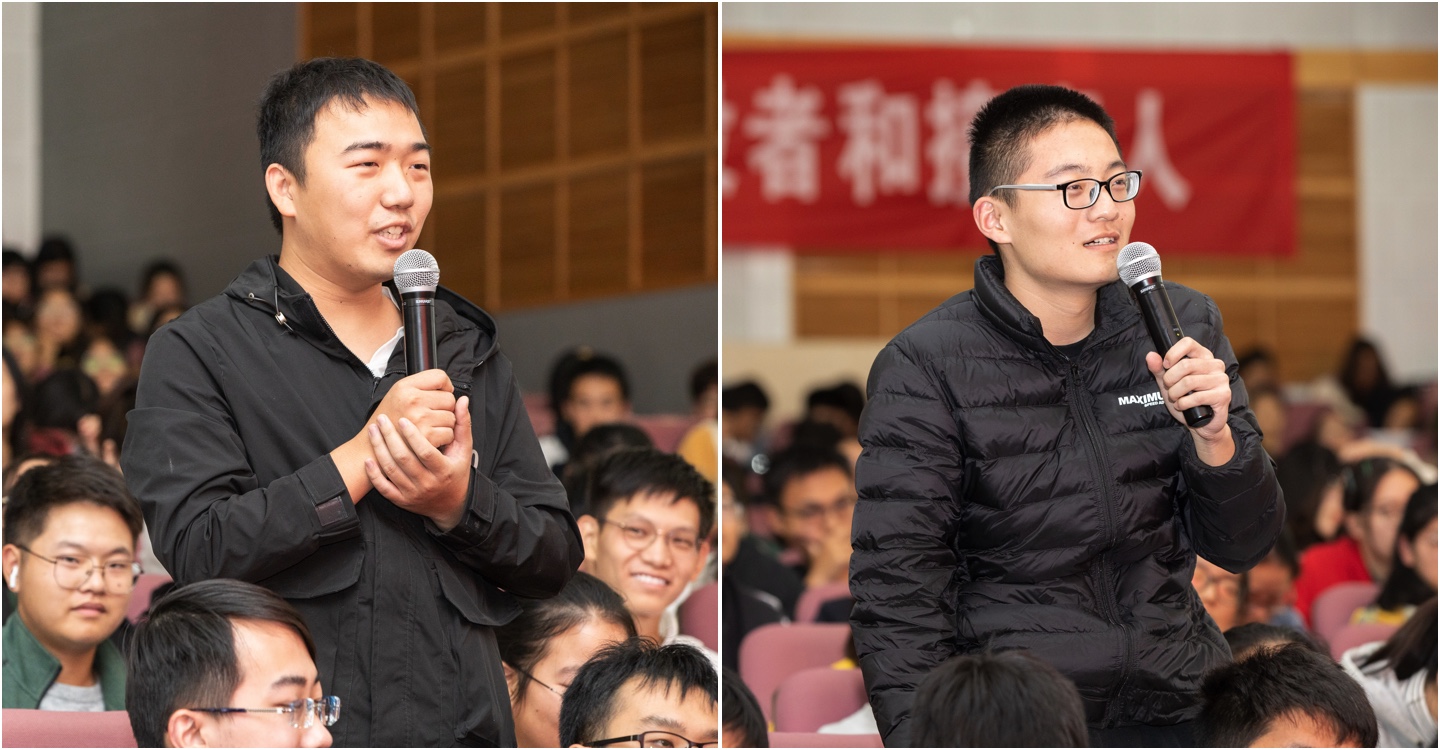 讲座后进行了“我与学长面对面”访谈环节,杨金龙院士同现场师生进行了亲切深入交流。 杨院士结合在南师物理系的本科学习,以及在量子化学中的科研经历,谈了自己对交叉学科的看法,对学术、科研精神的理解和对本科生科研的建议,他鼓励同学们在本科期间能够积极探索一些具有挑战性和前瞻性的领域。他表示,有时候我们所掌握的学识和知识反而会成为研究的制约因素,我们往往不会去证明一些看似平庸的问题,可实际去探究却又可能有意想不到的成果。他提出,本科生进实验室可以不被论文成果等要求束缚住手脚,科研技能和寻找问题的能力才应是本科生科研教学的最终目的。