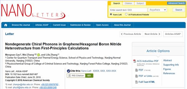 张力发教授在《Nano Letters》上发表关于手性声子的最新研究成果