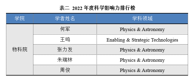王鸣、何军两位学者入选“全球前2%顶尖科学家终身科学影响力排行榜”,何军、王鸣、张力发、朱瑞林和周俊5位学者入选“全球前2%顶尖科学家2022年度科学影响力排行榜”。