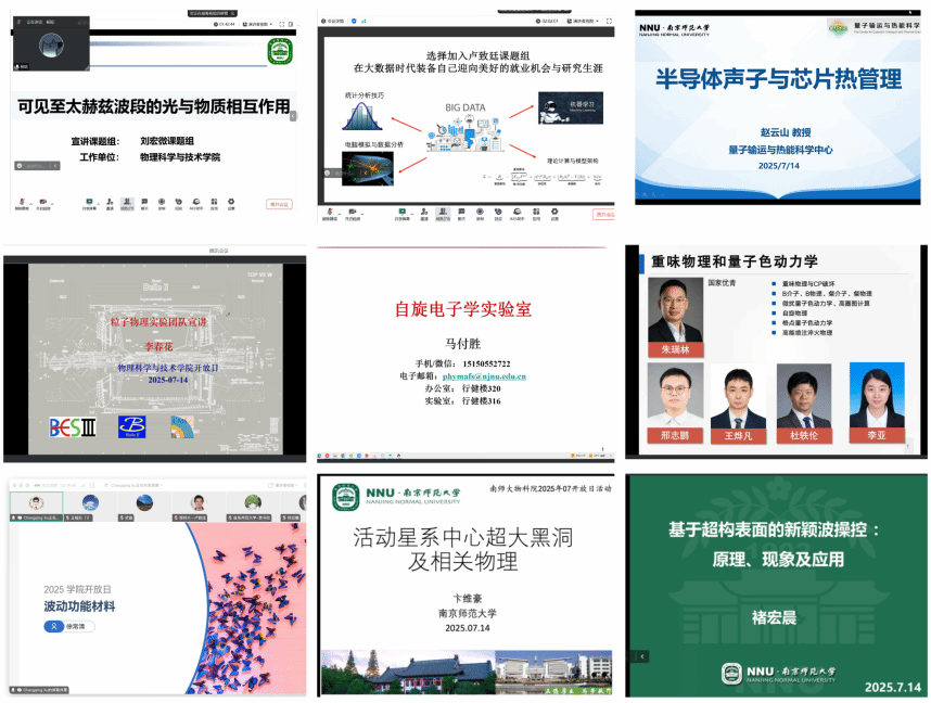 多位资深教师依次登场,带来了一场场精彩纷呈的学术报告。杨昉老师深入解析可见至太赫兹波段光与物质的相互作用机制,卢致廷老师引领大家探秘暗世界的深邃奥妙,赵云山老师聚焦半导体声子特性与芯片热管理技术前沿,李春花老师系统介绍粒子物理领域 CMS、BelleⅡ、BESⅢ 三大实验的核心成果与科学价值,马付胜老师详解磁性材料的独特性能及其在多领域的创新应用,邢志鹏老师深入浅出阐释重味物理与量子色动力学的基础理论与研究进展,徐常清老师剖析波动功能材料的特殊物理特性与应用前景,卞维豪老师带大家走近活动星系中心超大黑洞,解读其背后蕴含的物理现象,褚宏晨老师则分享了基于结构化表面的新颖操控技术与科学突破。