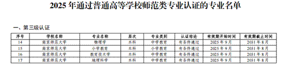 物理学专业与华东师范大学、东北师范大学的物理专业一道,成为继华南师范大学、陕西师范大学之后第三批通过师范类专业三级认证的物理学专业。